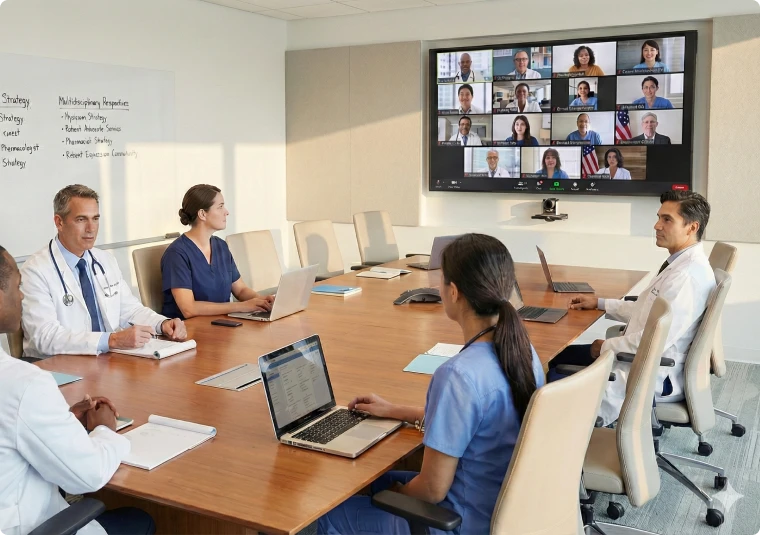Virtual Advisory Boards (VABs) provide a flexible, efficient, and insight-rich way to engage experts across geographies. MphaR supports the full design, coordination, and delivery of virtual advisory engagements —ranging from live, synchronous sessions to fully asynchronous formats—ensuring meaningful scientific dialogue and high-quality outcomes.